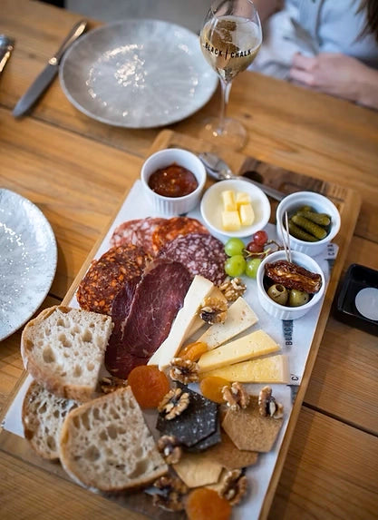 敷地内のテイスティングルームにはキッチンがあり地元の食材を使った軽食プレート(チーズ、シャルキュトリー、スモークトラウトなど)をご提供しています。